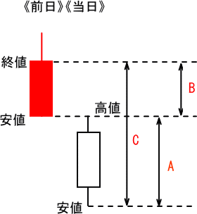 前日の終値-当日の安値 (C)