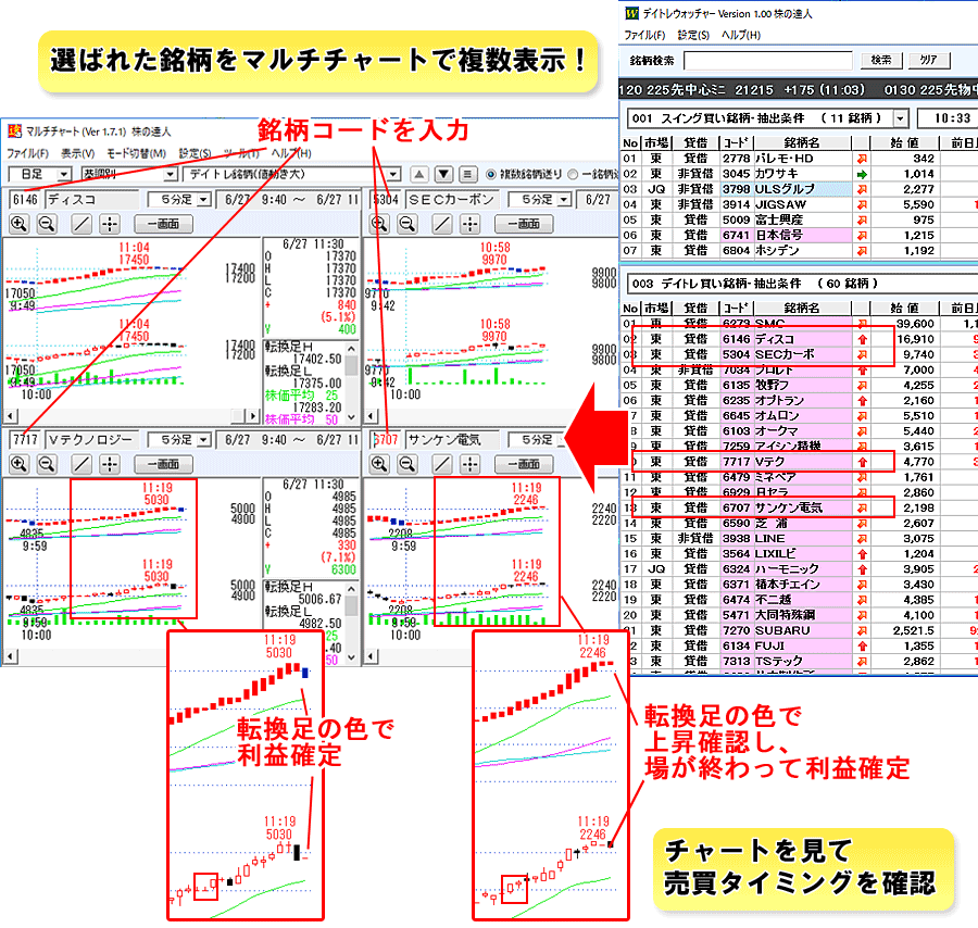 株の達人・デイトレウォッチャーと転換足でデイトレ勝率UP!